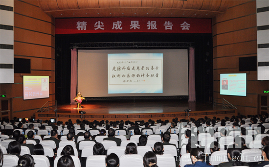 报告会由科研部尹维宏部长主持,来自基础部、生物医学工程系、西京医院和口腔医院的7名专家先后登台,分别报告了我校2009年度获得的7项国家及省部级一等奖获奖成果,包括获得2009年度医疗卫生领域唯一的国家科技进步一等奖的疼痛研究成果、中国获得第一个CD编号的白细胞分化抗原分子、中国第一个组织工程产品和世界首创的生物电阻抗成像医疗仪器、抗感染活性骨、自体干细胞治疗终末期肝病新技术、骨性反合矫治新技术。7位汇报人精采报告,充分展示了我校科技人员活跃的科研思维、严谨的学术作风和奋勇拼搏、勇于创新的科学精神。